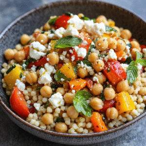 Cuscús salteado con Burgo de Arias Protein Plus, garbanzos y verduras