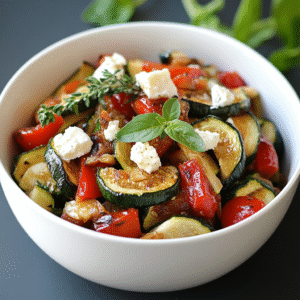 Ratatouille de calabacín con tomillo de limón y Burgo de Arias Cabra