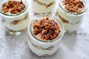 Vasitos de crema de yogur con turrón de yema tostada